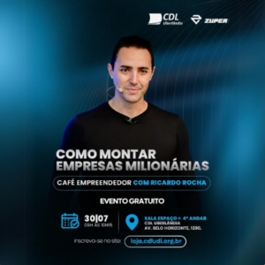 No próximo dia 30 de julho, a CDL Uberlândia realizará mais uma edição do Café Empreendedor, evento que contará com a presença do renomado empresário Ricardo Rocha. O encontro, que é gratuito, ocorrerá na Sala Espaço +, no 4º andar da CDL, das 9h às 10h da manhã, com início marcado por um coffee break.