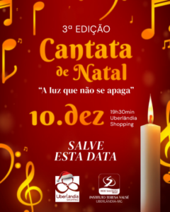 O clima natalino vai invadir o Uberlândia Shopping de forma ainda mais especial neste ano. Nesta quarta-feira, dia 10 de dezembro, às 19h30, o público poderá conferir uma “Cantata de Natal: a Luz que não se apaga”, do Instituto Teresa Valsé, preparada para emocionar famílias inteiras. A apresentação, que terá duração entre 30 e 40 minutos, acontecerá próximo ao Cinemark Uberlândia e reunirá um elenco de aproximadamente 90 participantes, entre banda, coral e equipe técnica.